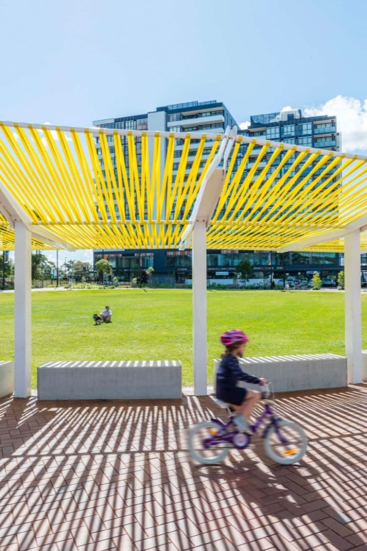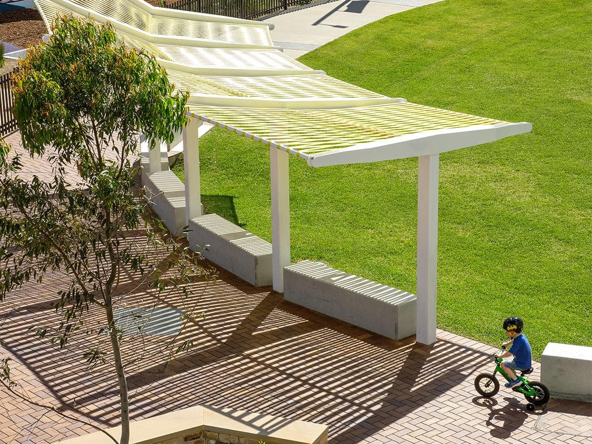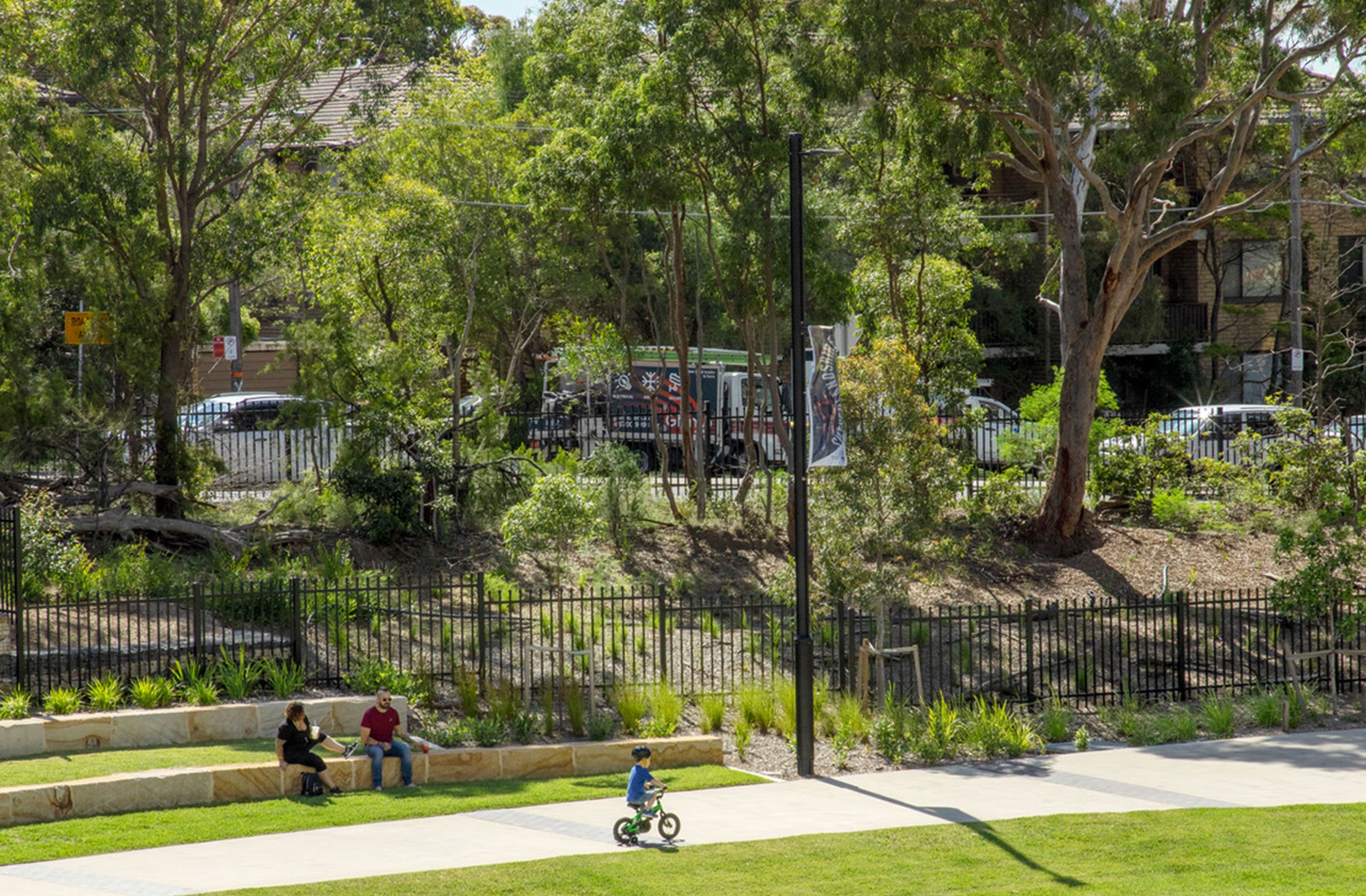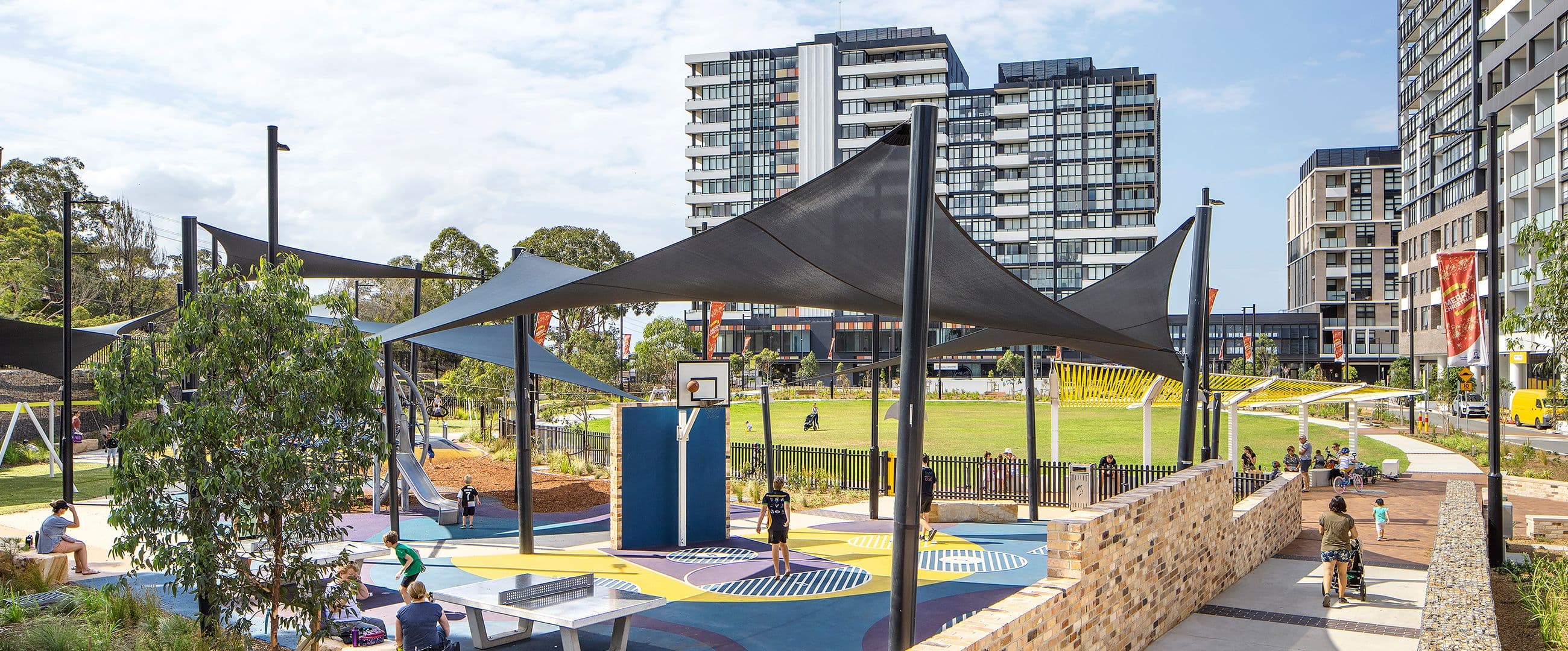 Home to critically endangered Sydney Turpentine Ironbark Forest (STIF) vegetation, the redevelopment of the Kirrawee brick pit balances residential and commercial needs with the protection of heritage values. The project integrates sustainable design to ensure long-term ecological and cultural preservation. A central park featuring an informal sports oval, amphitheatre, plaza, and inclusive playground informs a vibrant new public heart for the community.