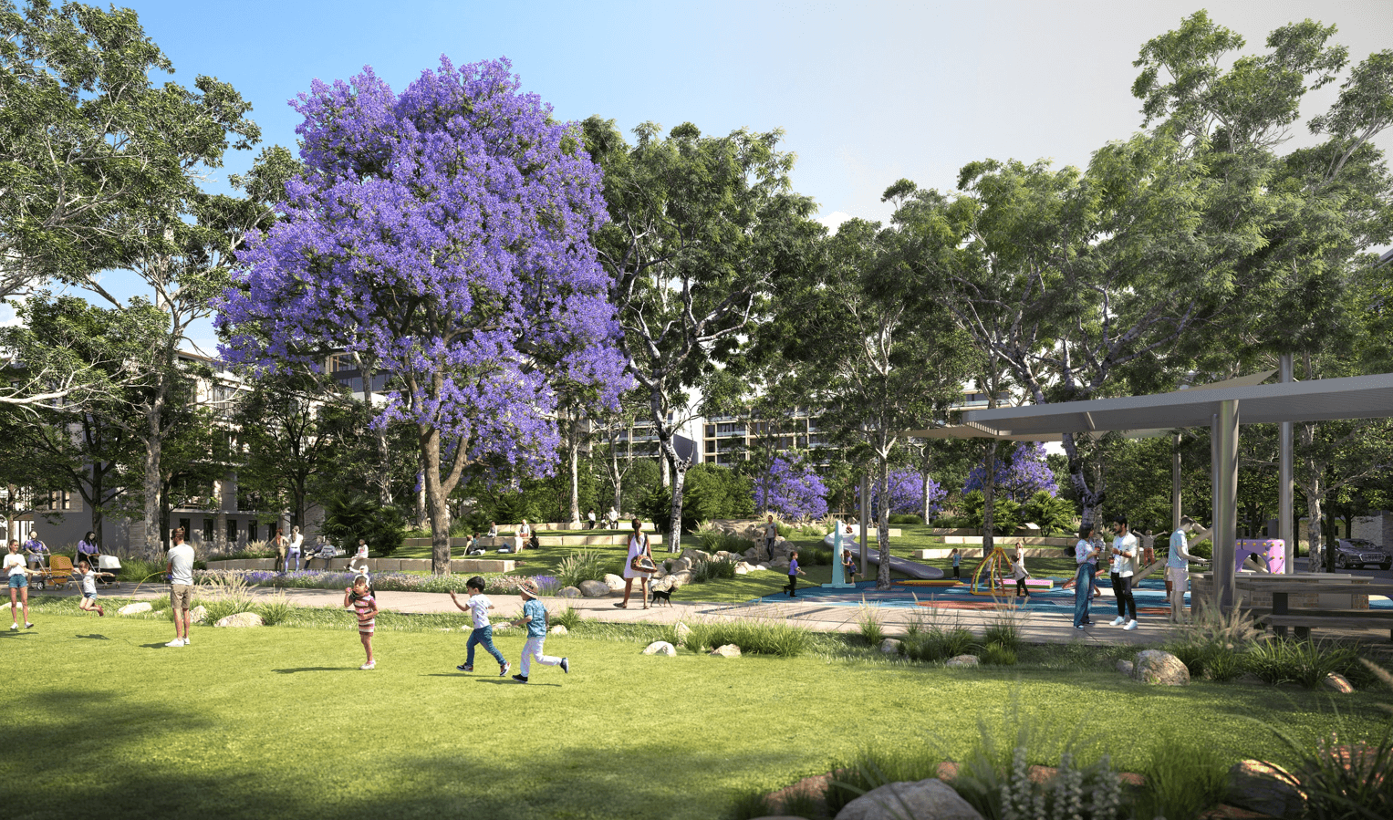 Marsfield Common is a thoughtfully designed, community-focused development that reimagines the former TG Millner Field into a vibrant residential neighbourhood anchored by a diverse and inclusive landscape. Central to the proposal is “The Common” – a 10,000m² public park set within stands of existing trees and biodiversity corridors. This green heart offers a rich variety of active and passive recreational experiences including nature play, multi-use courts, fitness loops, and quiet spaces for relaxation. Streetscapes and laneways are guided by Water Sensitive Urban Design principles and significant tree planting, creating comfortable, green, and walkable environments. The landscape vision celebrates natural systems, promotes environmental sustainability, and enhances community well-being, offering access to nature at every doorstep through rehabilitated ecosystems and connected open spaces.