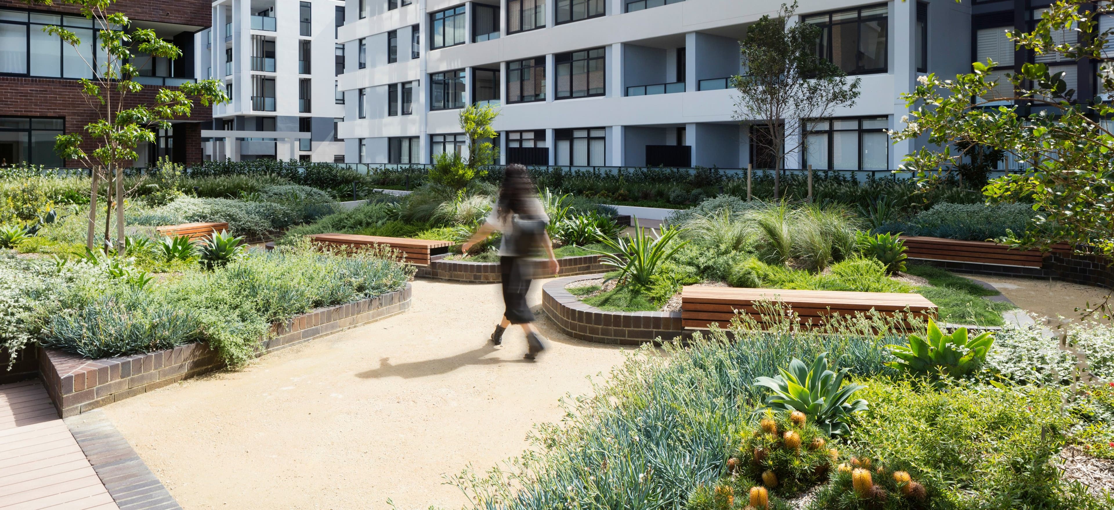 South Village is a vibrant, landscape-led precinct defined by an open street network that prioritises pedestrian movement, permeability, and public access. At its heart is a regionally significant park that connects the new development to Kirrawee’s existing centre, featuring a preserved remnant of Sydney Turpentine-Ironbark Forest, a generous playground, and seamless links to surrounding retail. A network of active laneways and public spaces supports a lively village atmosphere, while the kiln heritage interpretation space celebrates the site’s industrial past and enriches its evolving identity.