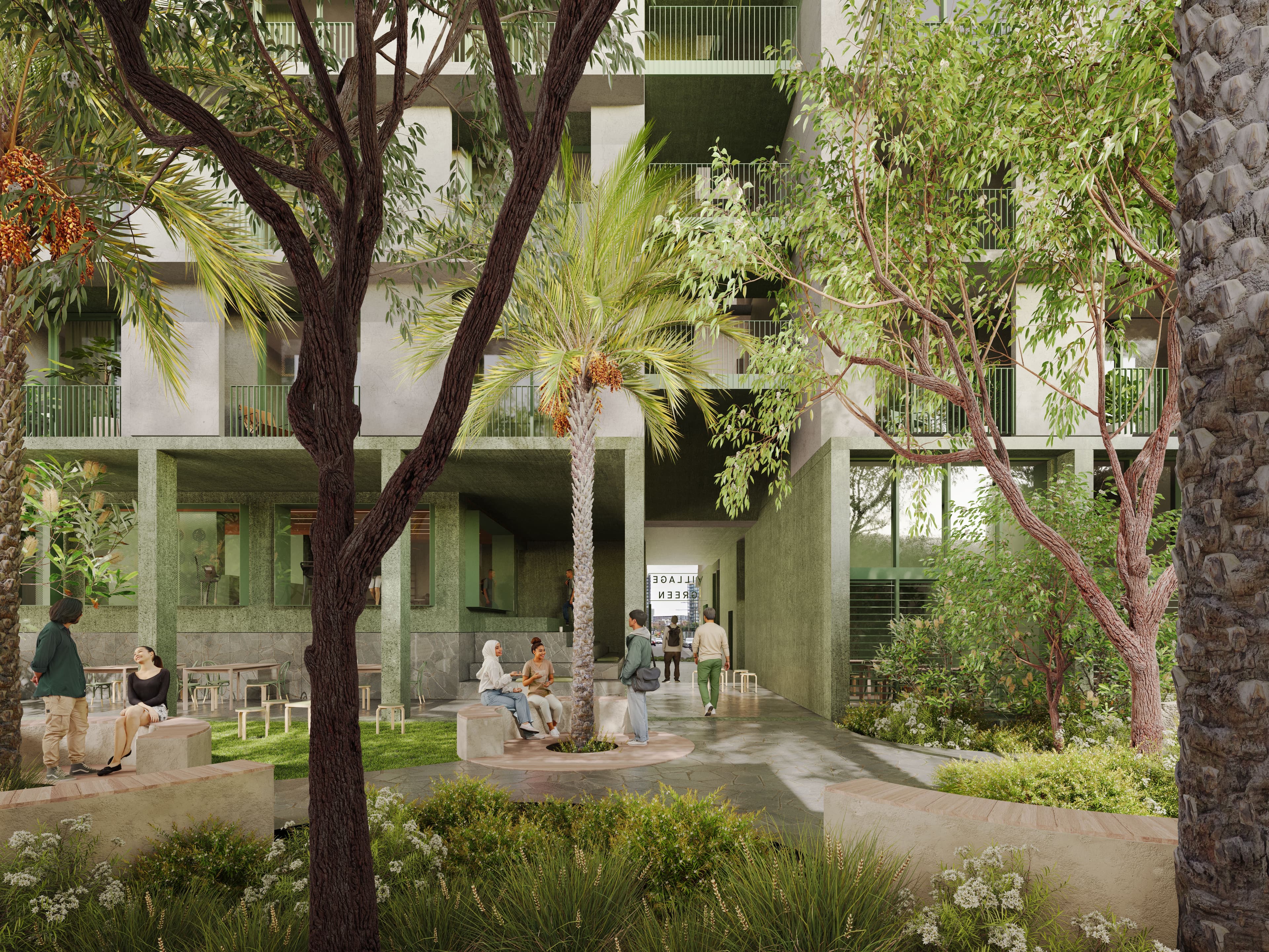 This boutique residential development integrates architecture and landscape to create a finely layered, ecologically responsive urban environment. Ground plane connections and through-site links promote permeability, while lush planting along facades, terraces, and rooftops enhances microclimate, privacy, and wellbeing. Sensitive site planning and cohesive landscape design ensure high-quality private and communal spaces that connect residents to nature.